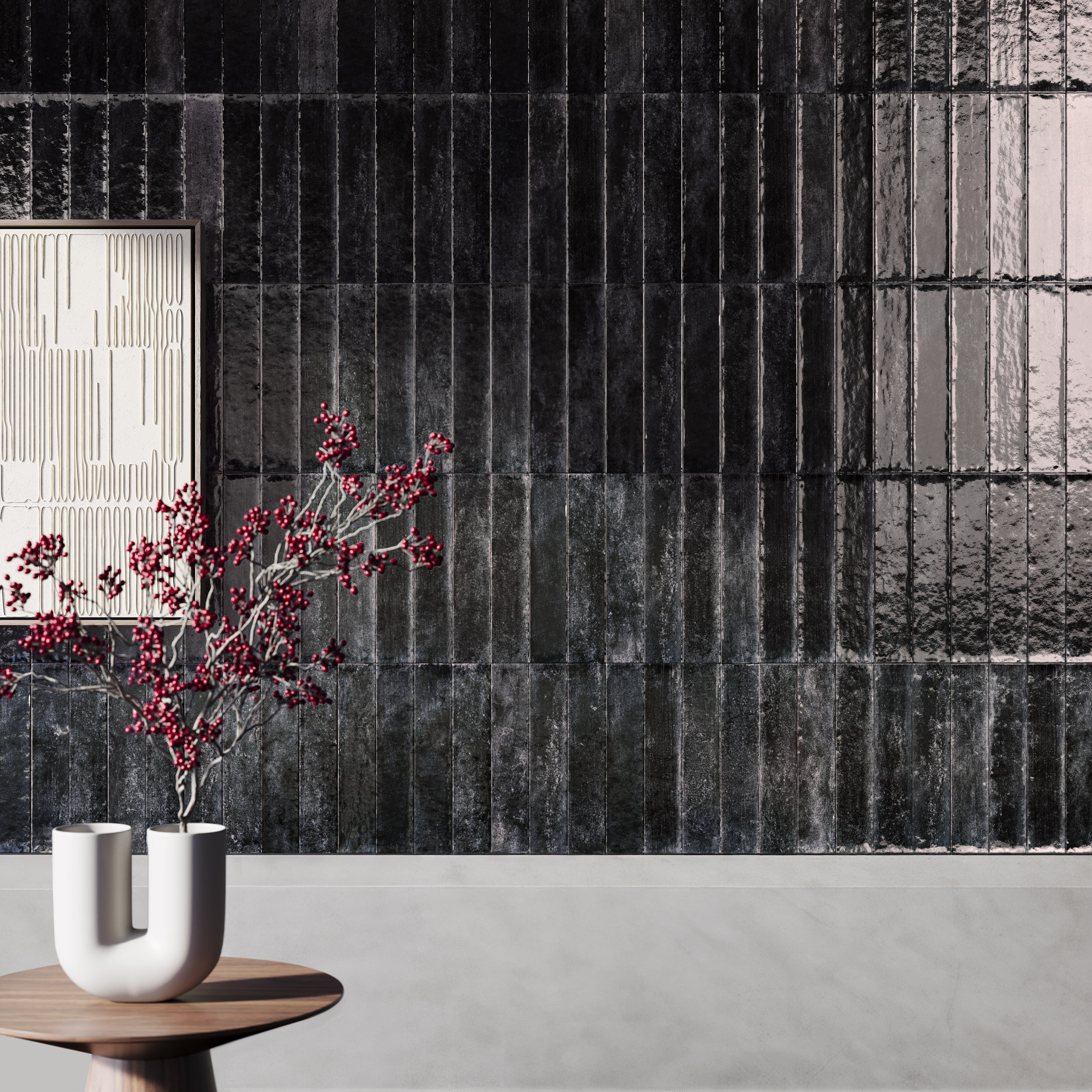 The glossy finish of Artistic Aqueous tiles adds a modern sheen, perfect for spaces seeking a touch of urban elegance. Imagine the transformative effect in a spa-like bathroom, where the deep green of Verdant Vapor evokes a sense of calm, or a contemporary kitchen backsplash featuring the cool tones of Graphite Gust, bringing a sleek, polished edge to the heart of the home.